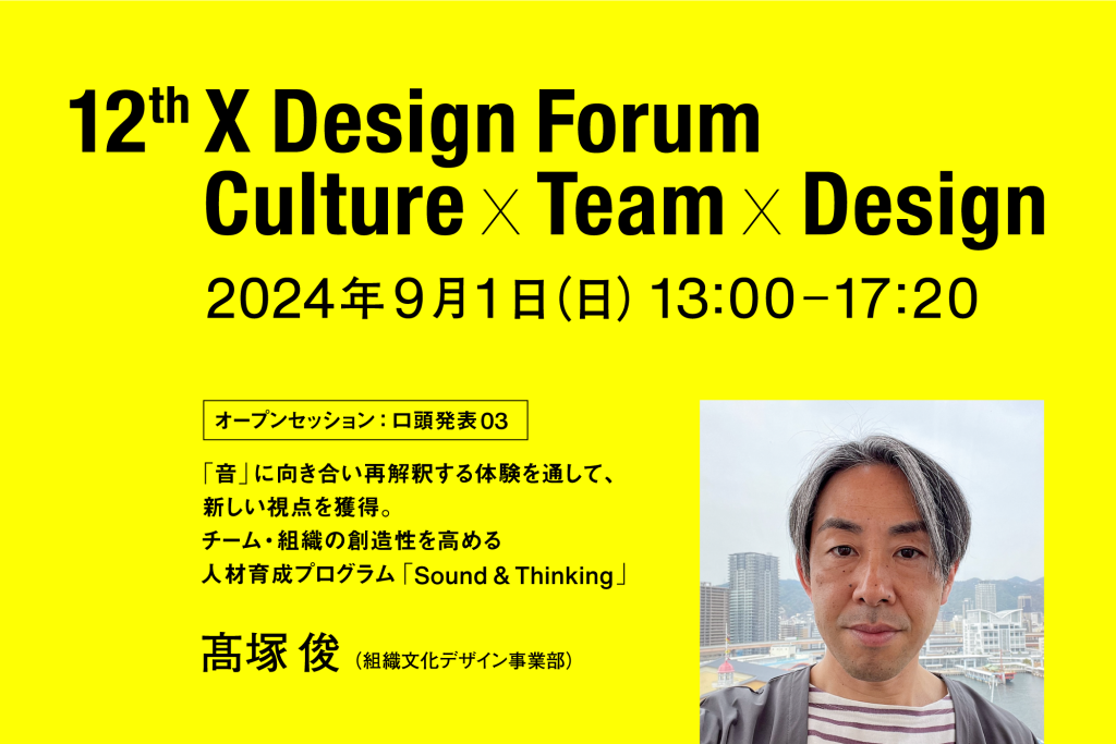 9月1日に開催される「第12回Xデザインフォーラム」に組織文化デザイン事業部の髙塚俊が登壇