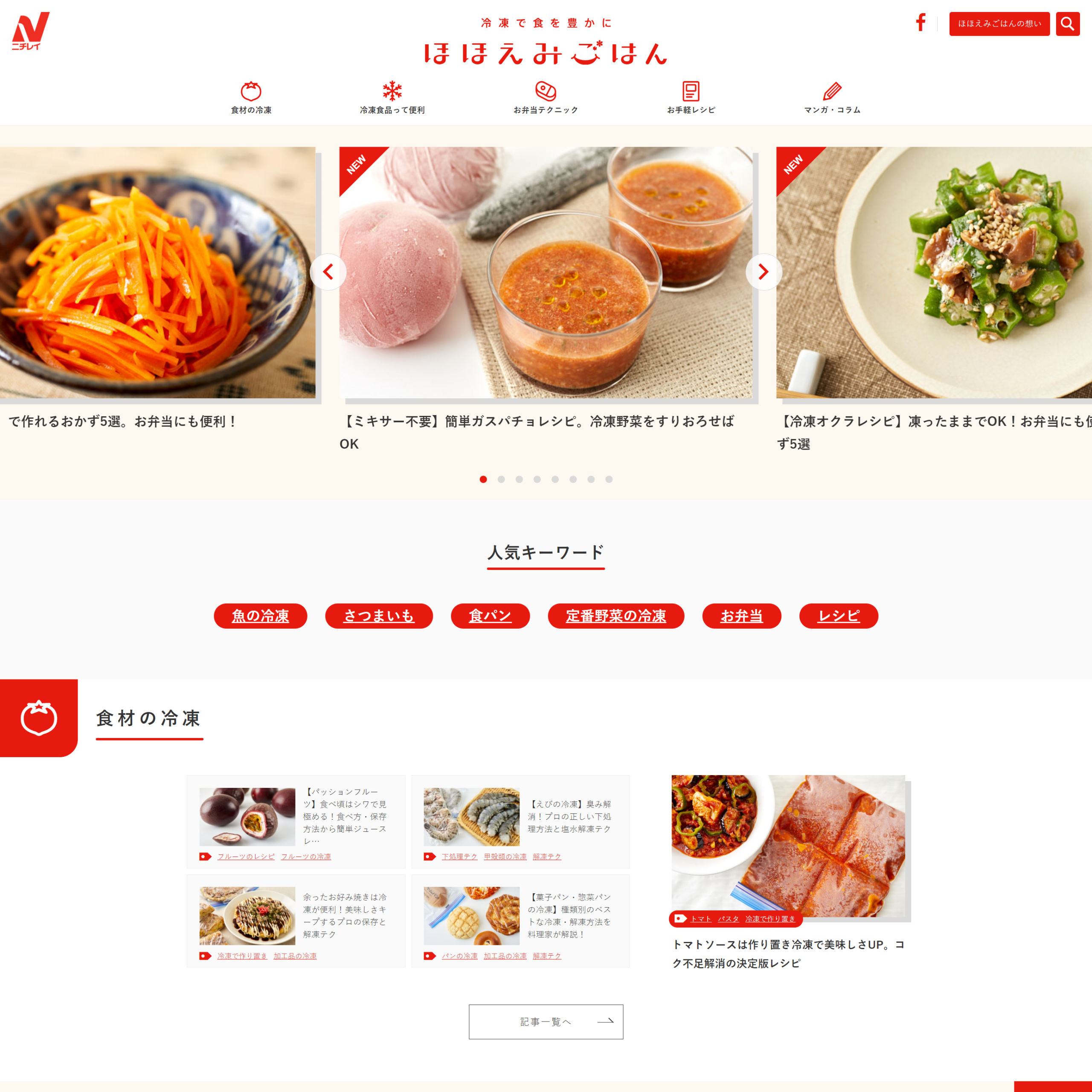 リニューアルに際しコンセプト等のメディア再設計からデザイン、運用を担当。冷凍食品のパイオニアであるニチレイフーズ様だからこそ発信できる、食材の冷凍保存方法や、美味しさをキープしながらの時短調理テクニック、食の悩みや疑問を解決するプロの知識や、冷凍食品を上手に使った漫画形式のレシピなど、SEOや食全体のトレンドといった観点からユーザーニーズを抽出し、コンテンツを発信。